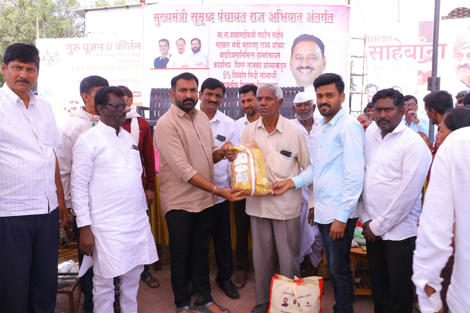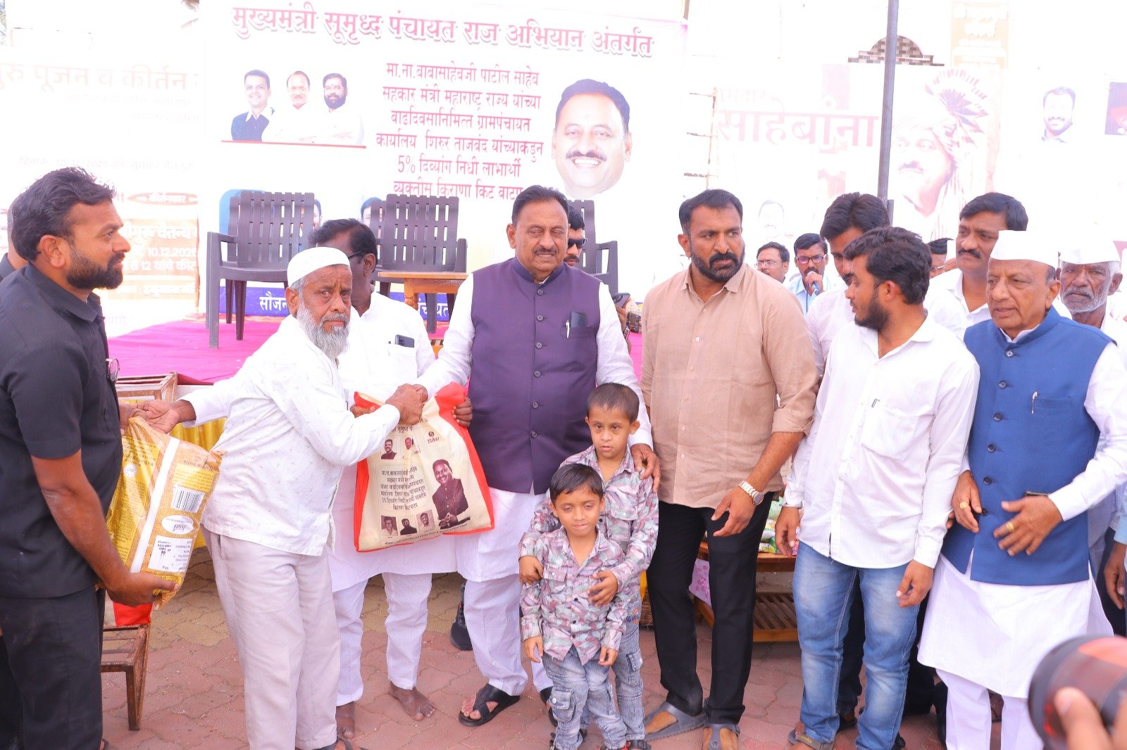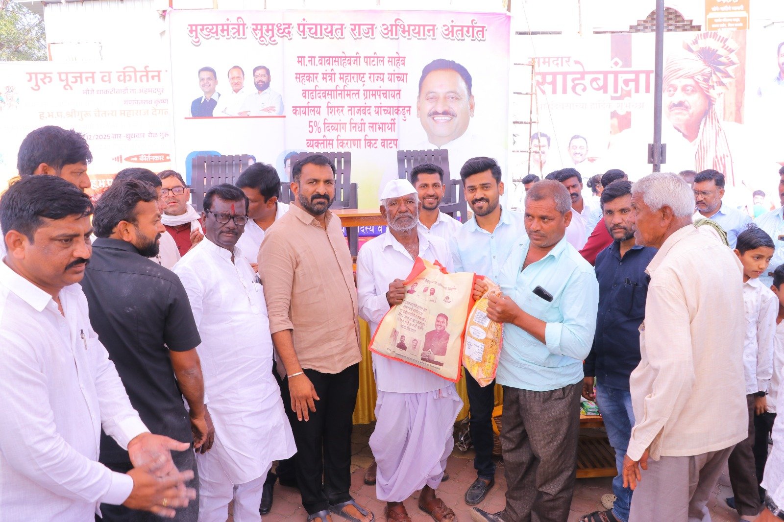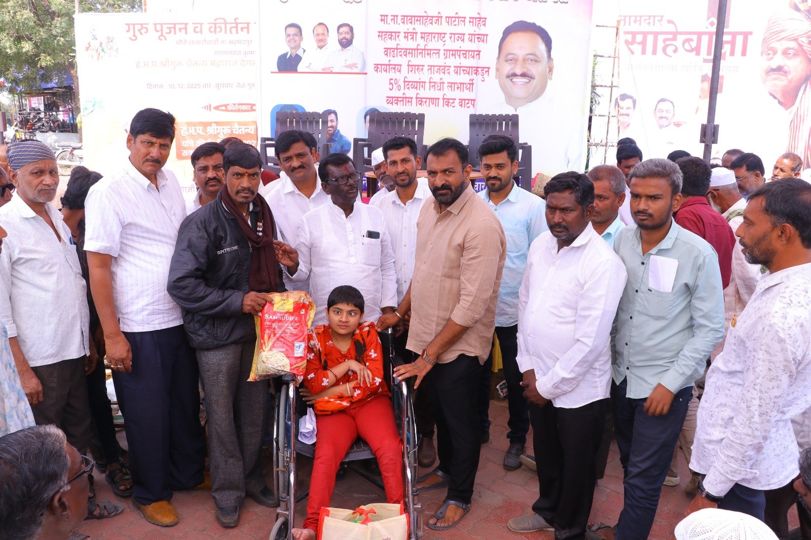 मुख्यमंत्री समृद्ध पंचायत राज अभियाना अंतर्गत ग्रामपंचायत शिरूर ताजबंद ता-अहमदपूर जि-लातूर येथे महाराष्ट्रराज्याचे सहकार मंत्री माननीय नामदार श्री.बाबासाहेबजी पाटील साहेब यांच्या वाढदिवसा निमित्त 5% दिव्यांग बांधवाना किराणा किटचे वाटप माननीय नामदार श्री.बाबासाहेबजी पाटील साहेब यांच्या हस्ते करण्यात आले. यावेळी सरपंच मा.श्री.मच्छिंद्र वाघमारे साहेब, उपसरपंच सुरजभैय्या पाटील साहेब, ग्रामपंचायत अधिकारी प्रशांत घुगे साहेब, ग्रा,पं, सदस्य युवराजभैया पाटील, रणधीर पाटील, गजेंद्र वलसे, किशन कापसे, शुभम सारोळे, रामेश्वर येणुरे, संभाजी सरवदे, किशोर वाघमारे, अनिलभाऊ लामतुरे, ग्राम पंचायत प्रशिक्षनार्थी अधिकारी राठोड साहेब, सर्व ग्रामपंचायत सदस्य गावकरी व दिव्यांग बांधव उपस्थित होते.