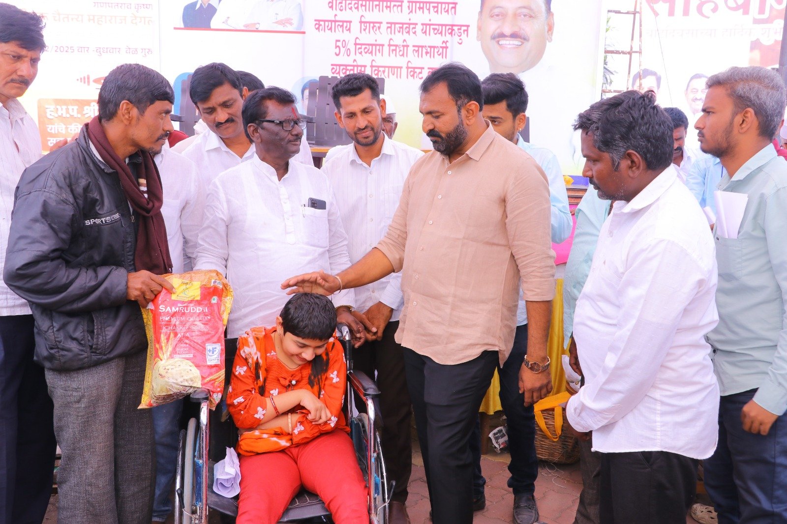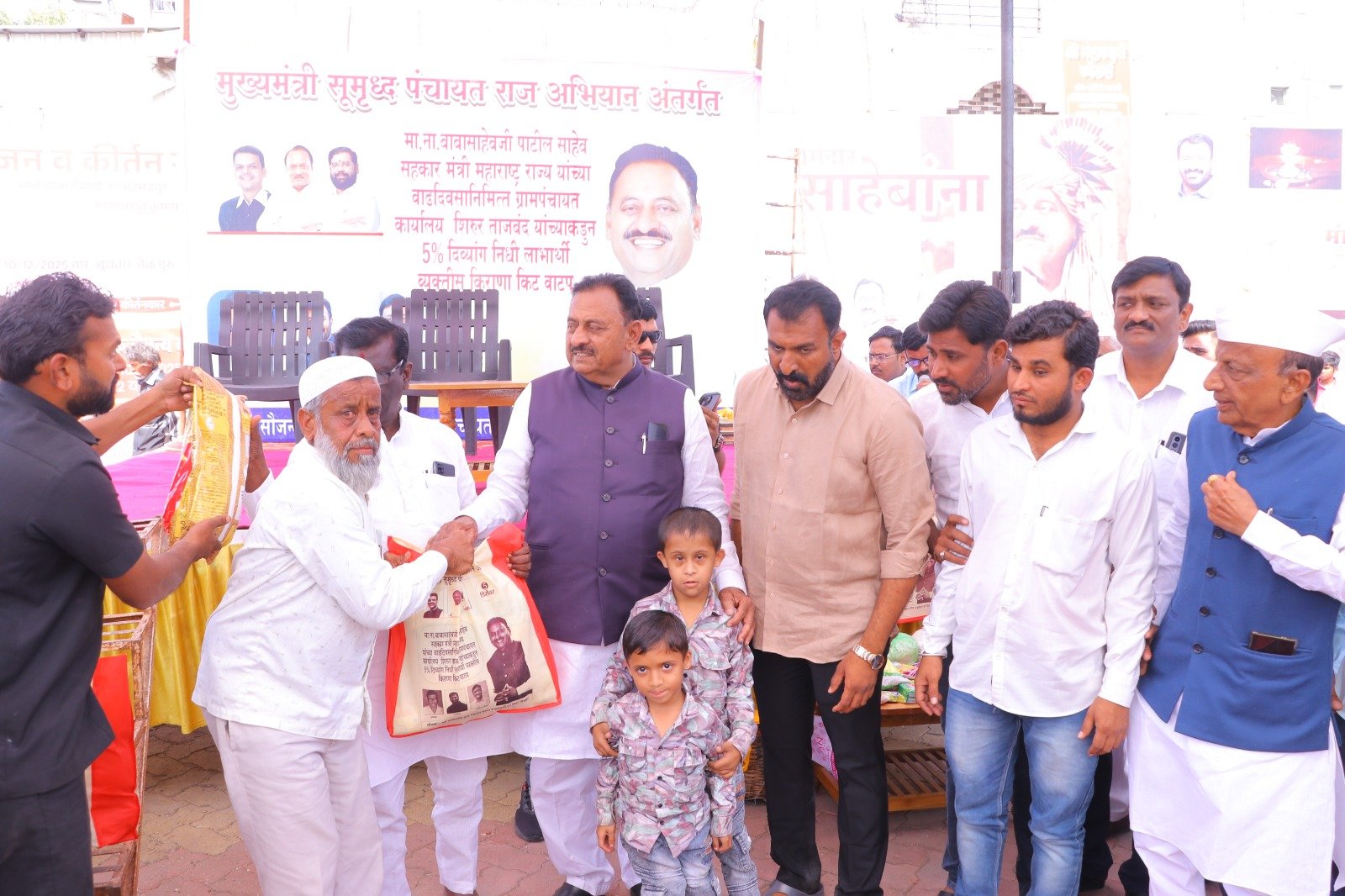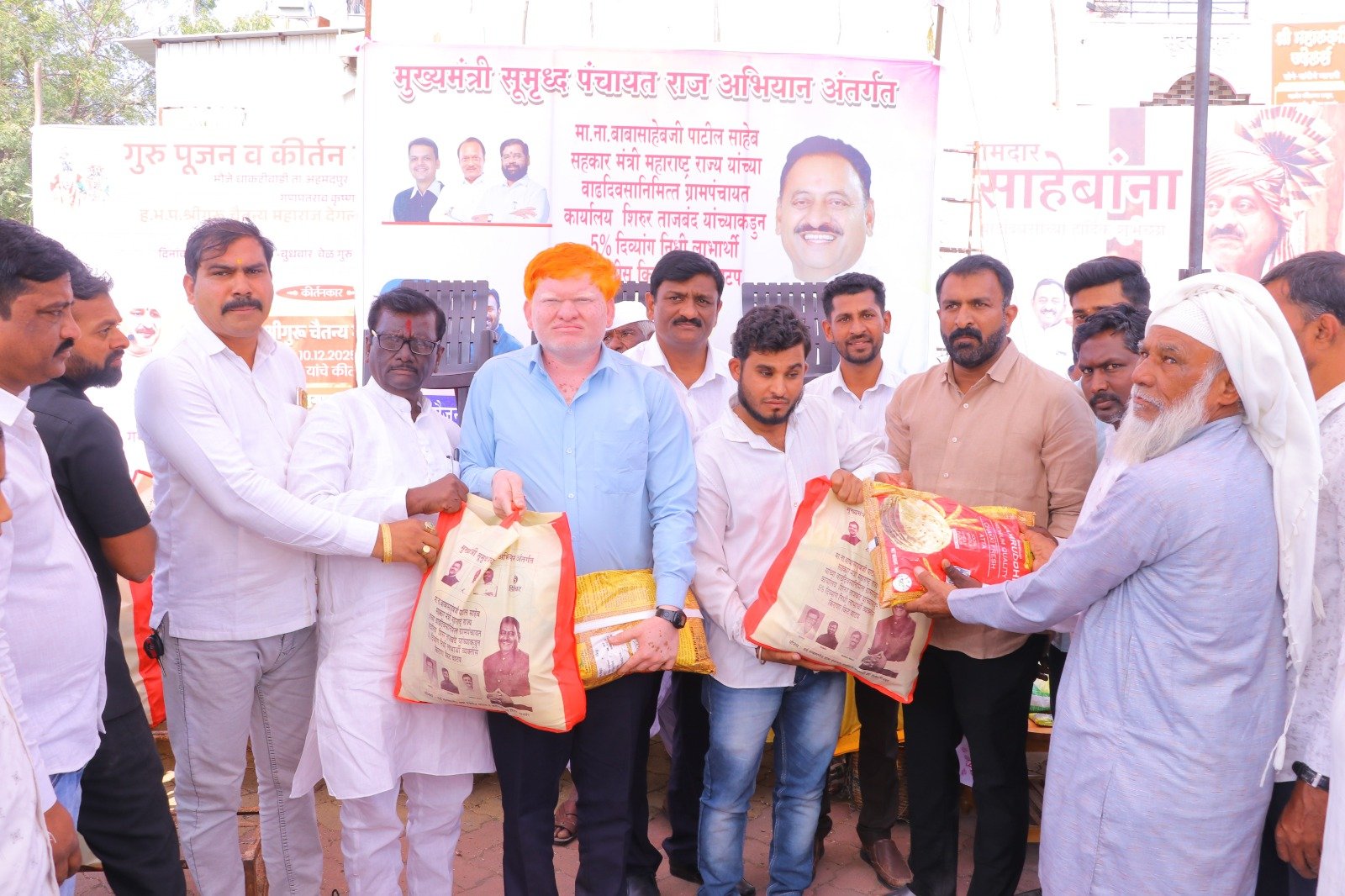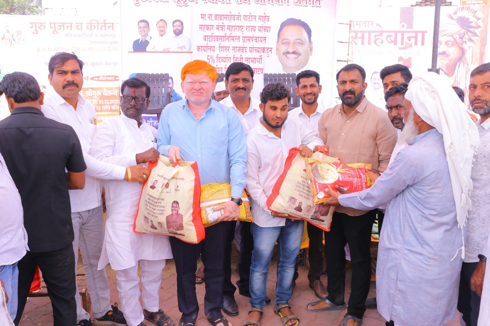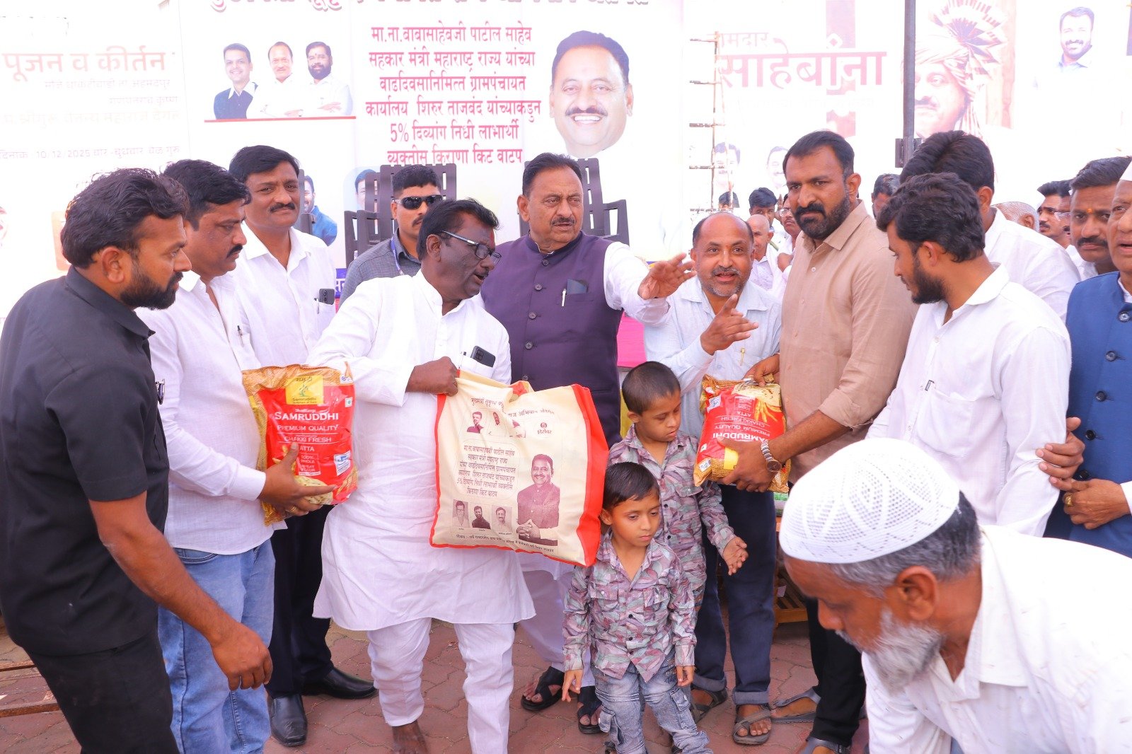 मुख्यमंत्री समृद्ध पंचायत राज अभियाना अंतर्गत ग्रामपंचायत शिरूर ताजबंद ता-अहमदपूर जि-लातूर येथे महाराष्ट्रराज्याचे सहकार मंत्री माननीय नामदार श्री.बाबासाहेबजी पाटील साहेब यांच्या वाढदिवसा निमित्त 5% दिव्यांग बांधवाना किराणा किटचे वाटप माननीय नामदार श्री.बाबासाहेबजी पाटील साहेब यांच्या हस्ते करण्यात आले. यावेळी सरपंच मा.श्री.मच्छिंद्र वाघमारे साहेब, उपसरपंच सुरजभैय्या पाटील साहेब, ग्रामपंचायत अधिकारी प्रशांत घुगे साहेब, ग्रा,पं, सदस्य युवराजभैया पाटील, रणधीर पाटील, गजेंद्र वलसे, किशन कापसे, शुभम सारोळे, रामेश्वर येणुरे, संभाजी सरवदे, किशोर वाघमारे, अनिलभाऊ लामतुरे, ग्राम पंचायत प्रशिक्षनार्थी अधिकारी राठोड साहेब, सर्व ग्रामपंचायत सदस्य गावकरी व दिव्यांग बांधव उपस्थित होते.