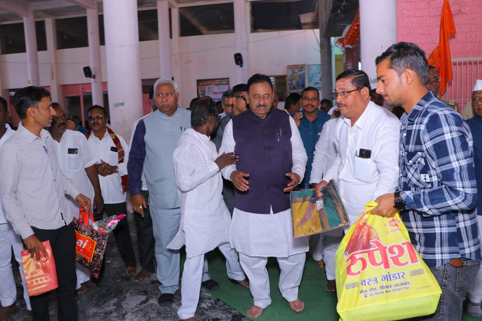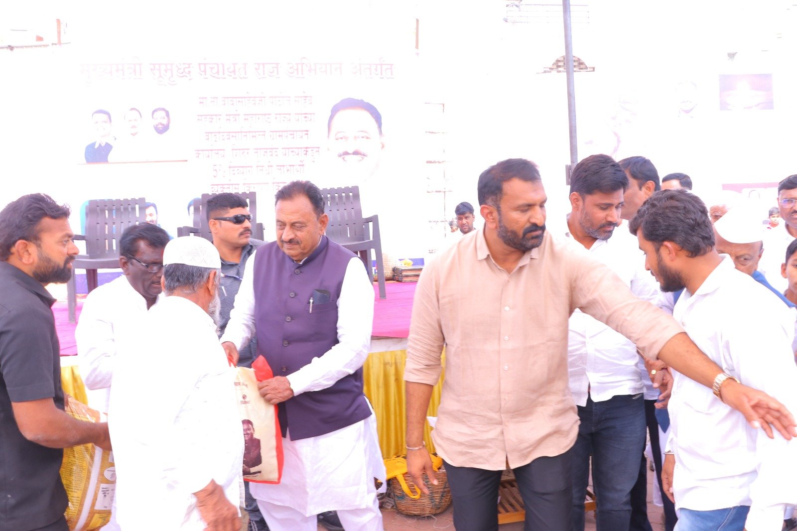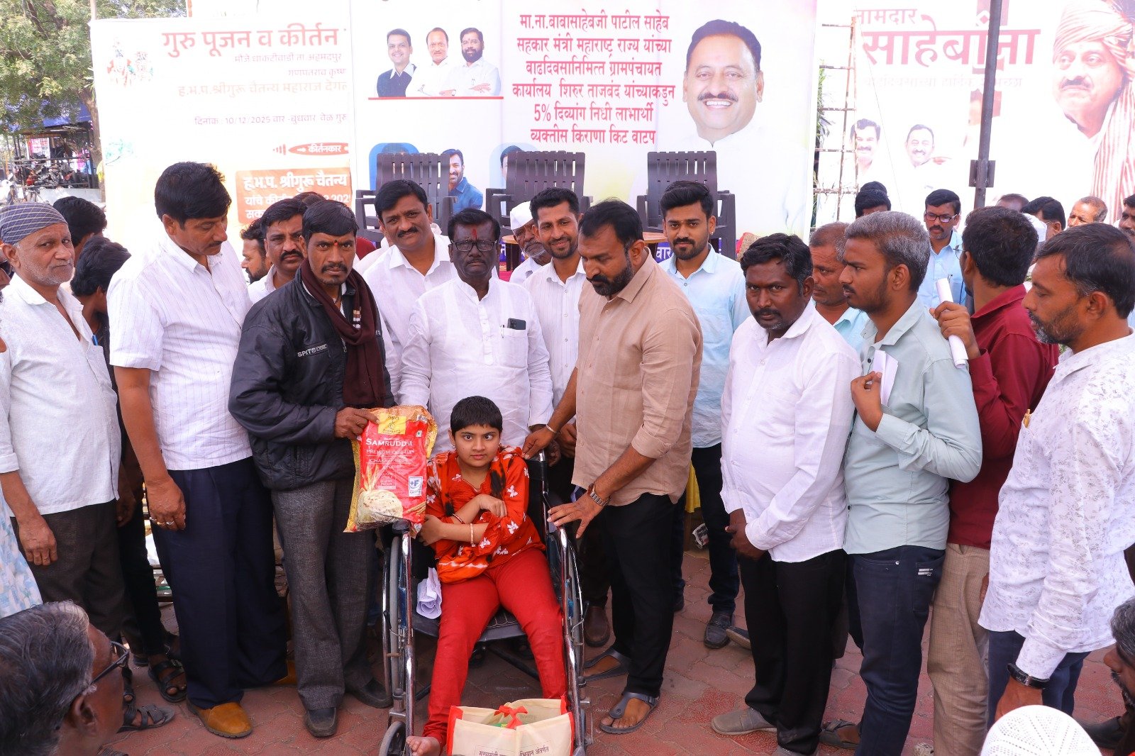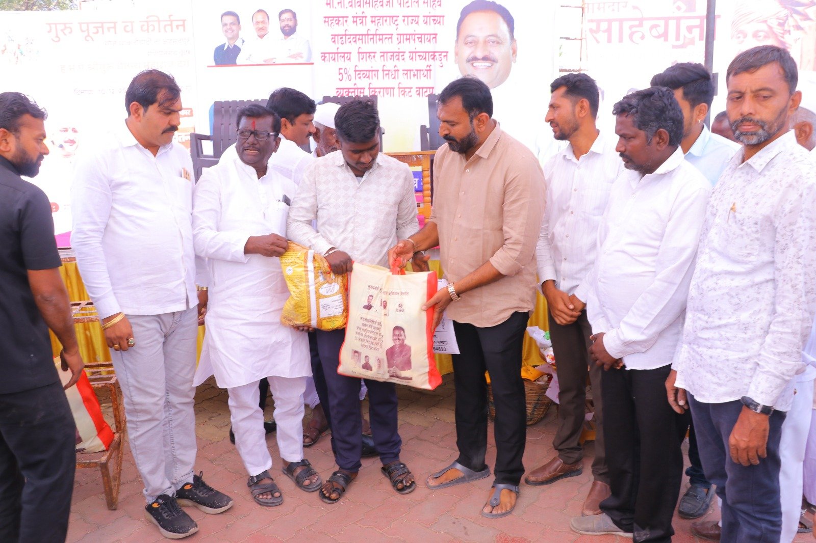 मुख्यमंत्री समृद्ध पंचायत राज अभियाना अंतर्गत ग्रामपंचायत शिरूर ताजबंद ता-अहमदपूर जि-लातूर येथे महाराष्ट्रराज्याचे सहकार मंत्री माननीय नामदार श्री.बाबासाहेबजी पाटील साहेब यांच्या वाढदिवसा निमित्त 5% दिव्यांग बांधवाना किराणा किटचे वाटप माननीय नामदार श्री.बाबासाहेबजी पाटील साहेब यांच्या हस्ते करण्यात आले. यावेळी सरपंच मा.श्री.मच्छिंद्र वाघमारे साहेब, उपसरपंच सुरजभैय्या पाटील साहेब, ग्रामपंचायत अधिकारी प्रशांत घुगे साहेब, ग्रा,पं, सदस्य युवराजभैया पाटील, रणधीर पाटील, गजेंद्र वलसे, किशन कापसे, शुभम सारोळे, रामेश्वर येणुरे, संभाजी सरवदे, किशोर वाघमारे, अनिलभाऊ लामतुरे, ग्राम पंचायत प्रशिक्षनार्थी अधिकारी राठोड साहेब, सर्व ग्रामपंचायत सदस्य गावकरी व दिव्यांग बांधव उपस्थित होते.