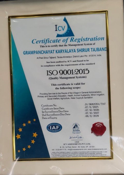 मुख्यमंत्री समृद्ध पंचायत राज अभियाना अंतर्गत ग्रामपंचायत शिरूर ताजबंद ISO प्रमाणपत्र