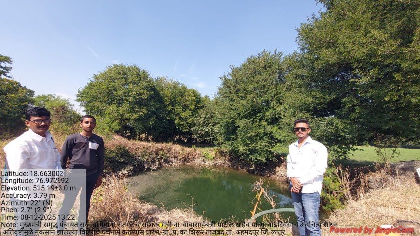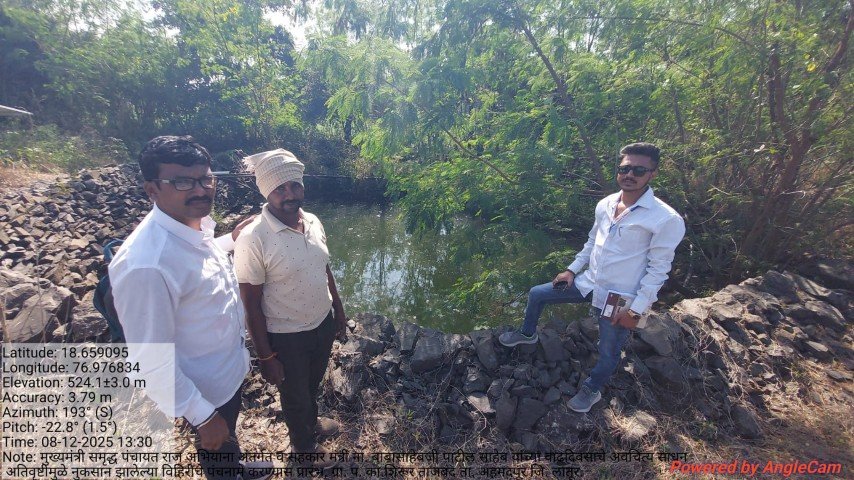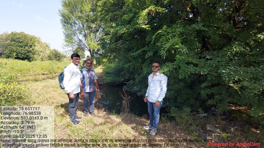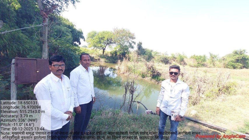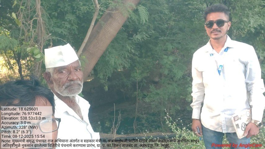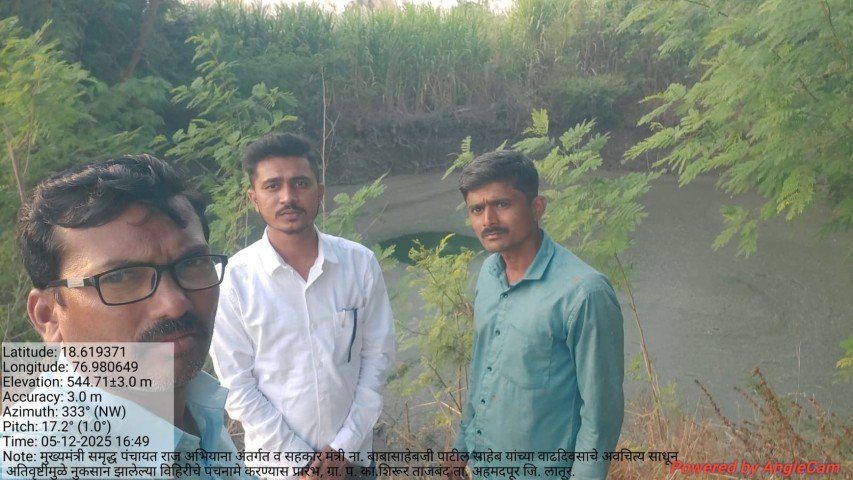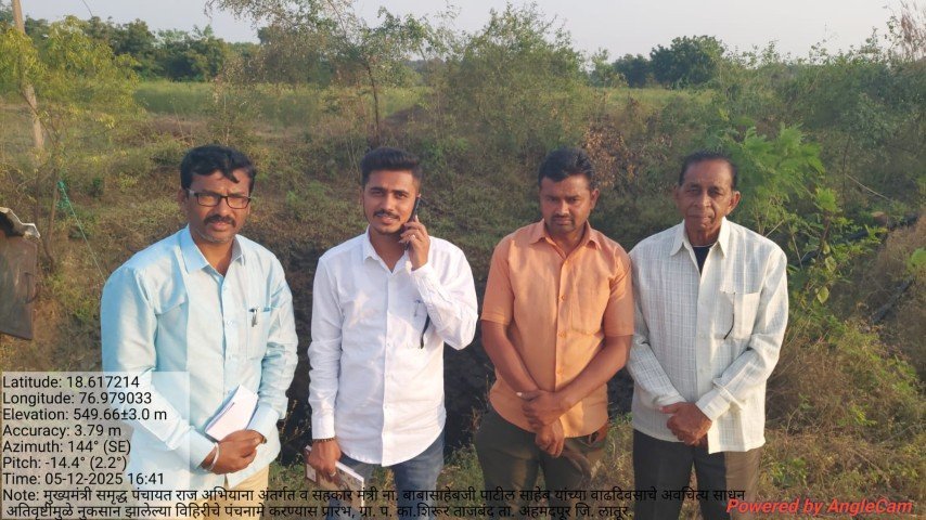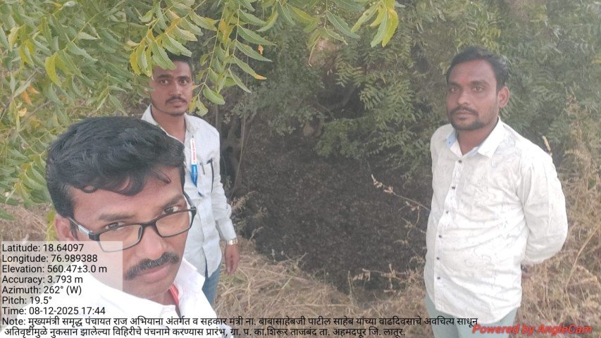 मुख्यमंत्री समृद्ध पंचायत राज अभियाना अंतर्गत व सहकार मंत्री ना. बाबासाहेबजी पाटील साहेब यांच्या वाढदिवसाचे अवचित्य साधून ग्रा. प. का.शिरूर ताजबंद ता. अहमदपूर जि. लातूर. यांच्या वतीने अतिवृष्टीमुळे नुकसान झालेल्या विहिरीचे पंचनामे करण्यास प्रारंभ, यावेळी पंचनामे करतेवेळी नारेगा अभियंता वैभव राठोड सर , ग्राम रोजगार सहाय्यक धर्मपाल सरवदे व शेतकरी बांधव उपस्थित होते